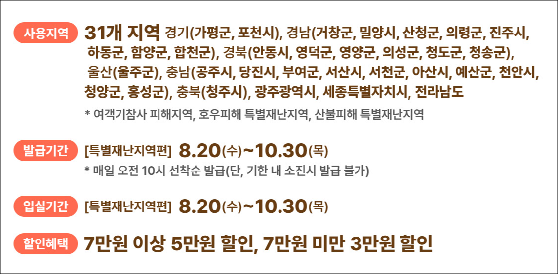(특별재난지역편도 같은 기간 운영) - 쿠폰 발급 및 입실 기간 : 8월 20일 ~ 10월 30일