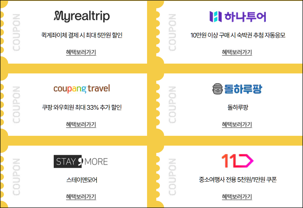 | 마이리얼트립, 쿠팡트래블 등 | 다양한 OTA에서 쿠폰 발급 가능 |