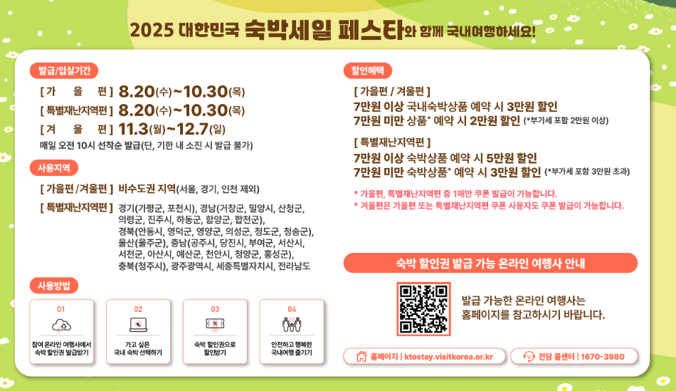- 대한민국 숙박세일 페스타 할인 쿠폰 제공