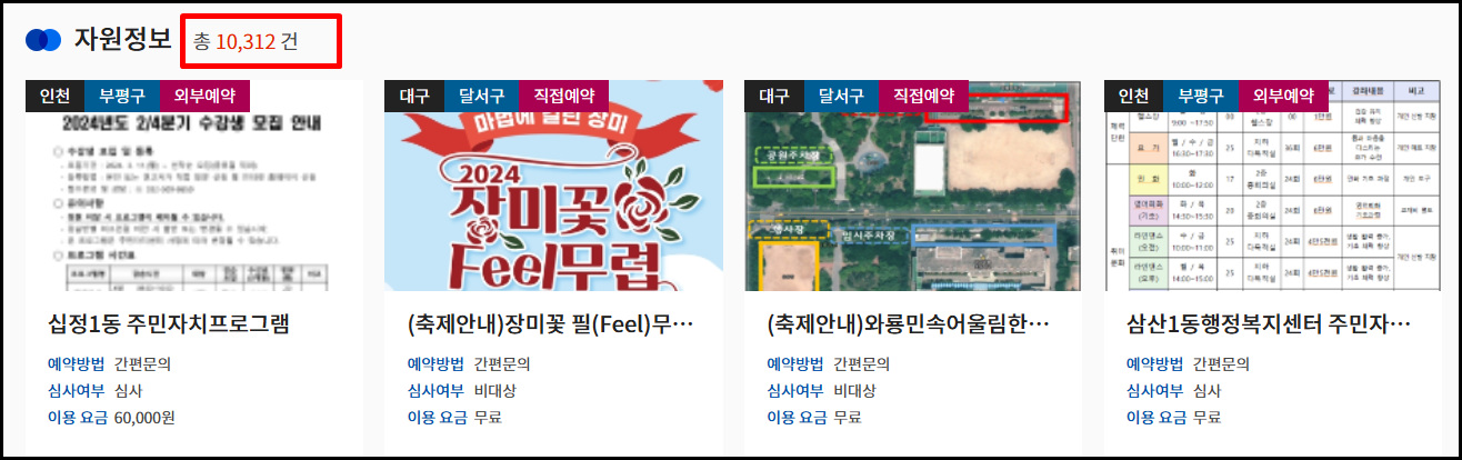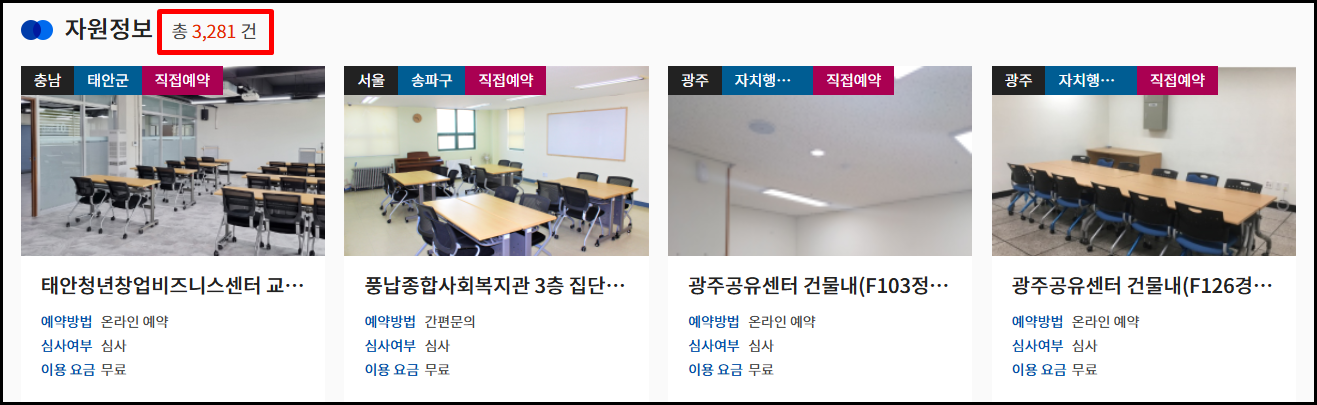 전국 약 1200여 개의 공공시설을 개방하고 있으므로 위와 같이 간편하게 예약하고 활용할 수 있어요.