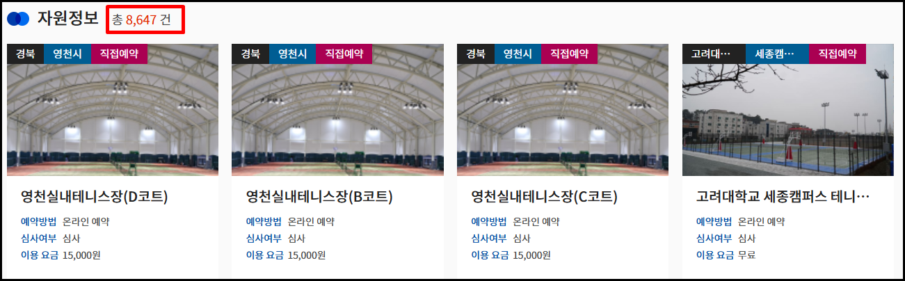 전국 약 1200여 개의 공공시설을 개방하고 있으므로 위와 같이 간편하게 예약하고 활용할 수 있어요.