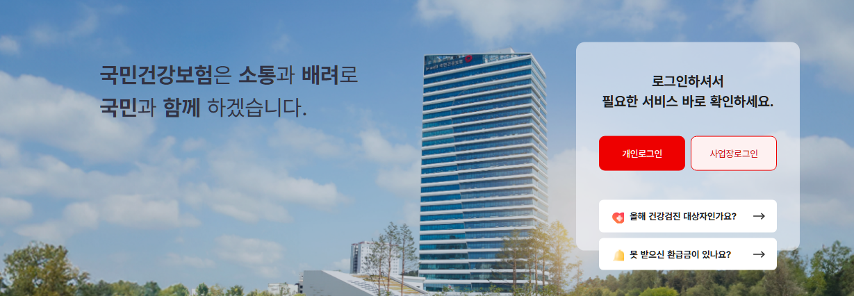 - 국민건강보험공단 홈페이지 접속
