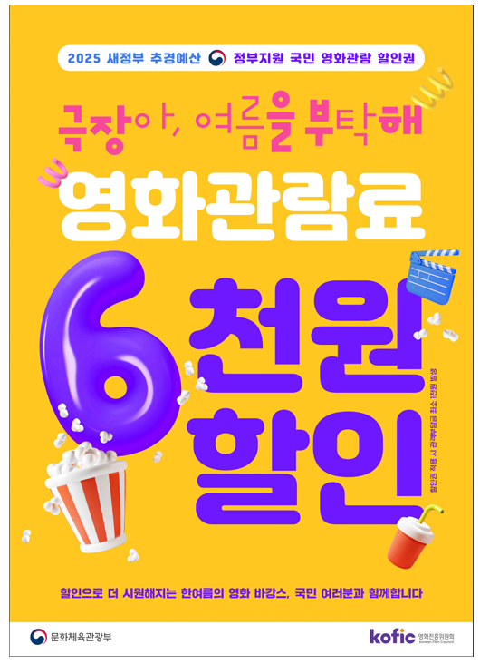 ✅ 전국민 대상! 영화관 입장권 6,000원 할인 지원