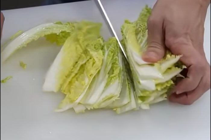 - 봄동 밑동을 자르고 잎을 한 장씩 분리합니다.