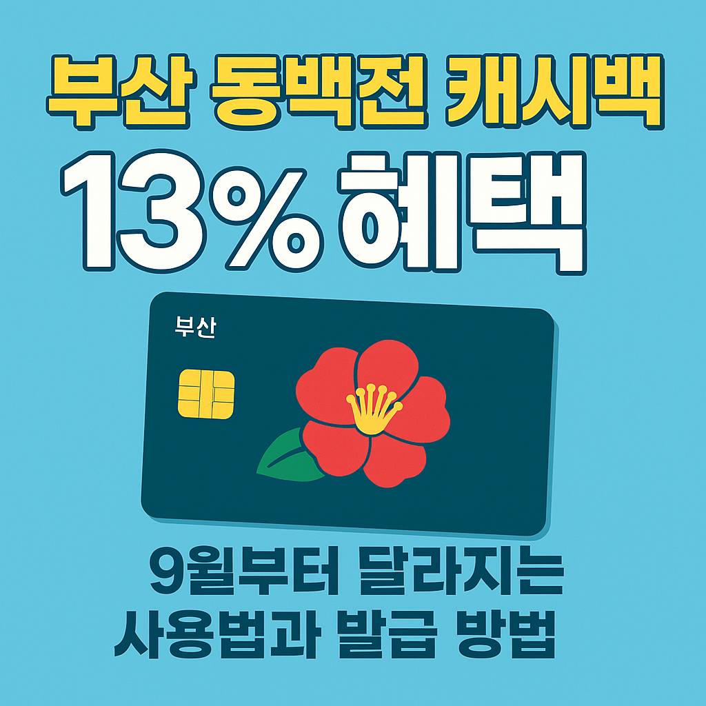 부산 동백전 캐시백 13% 혜택! 2025년 9월부터 확대되는 동백전 발급 방법, 사용처, 추가 혜택까지 한눈에 정리했습니다. 부산시민 필수 체크 카드!