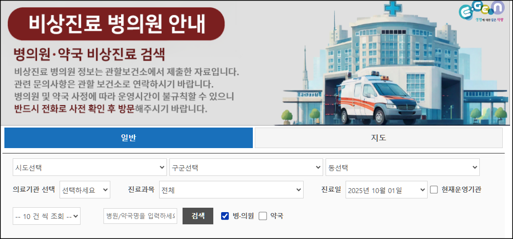 ① 보건복지부 응급의료포털 (E-gen)