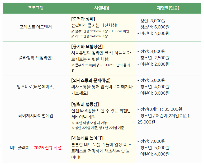 도심 한복판 숲길따라 다양한 과제에 도전하는 어드벤처 코스!