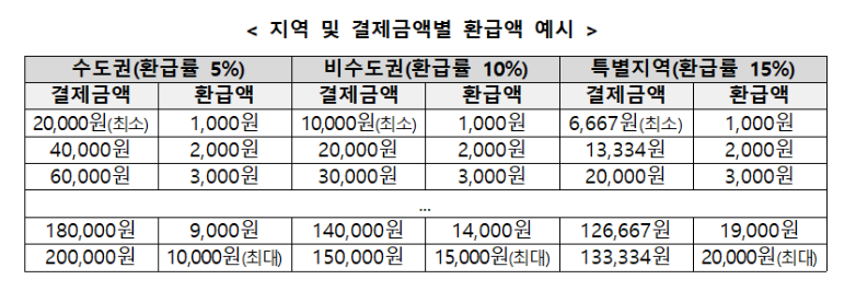 • 🌟 환급 꿀팁: 여러 지역에서 사용했다면? 각 지역의 최소 결제 금액을 충족할 경우 중복 환급도 가능합니다!