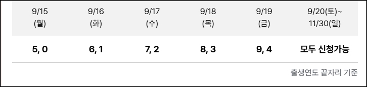 - 9/20(토)~11/30(일): 모두 신청 가능