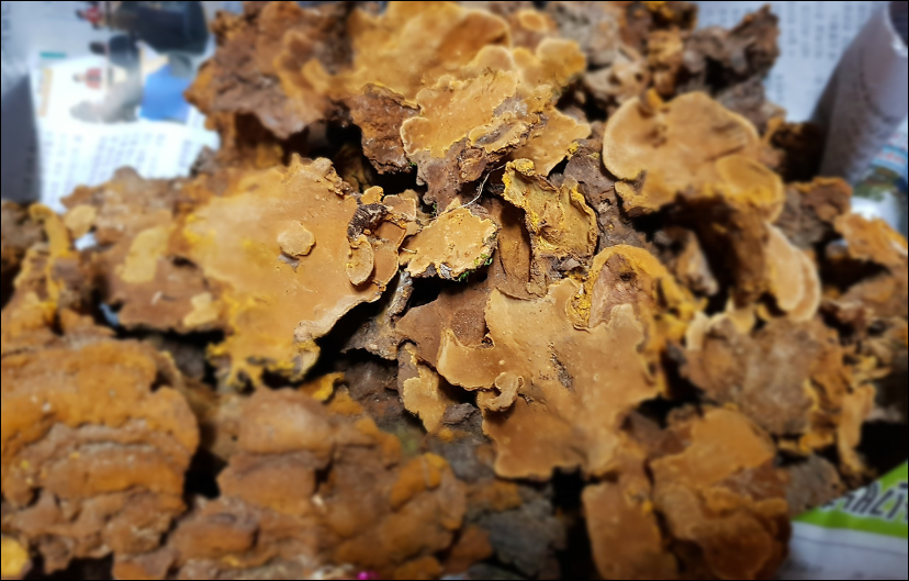 건조 상황버섯은 황갈색~갈색 계열이 자연스러운데, 너무 검거나 탁한 색이면 오래되었거나 품질이 떨어질 수 있어요.