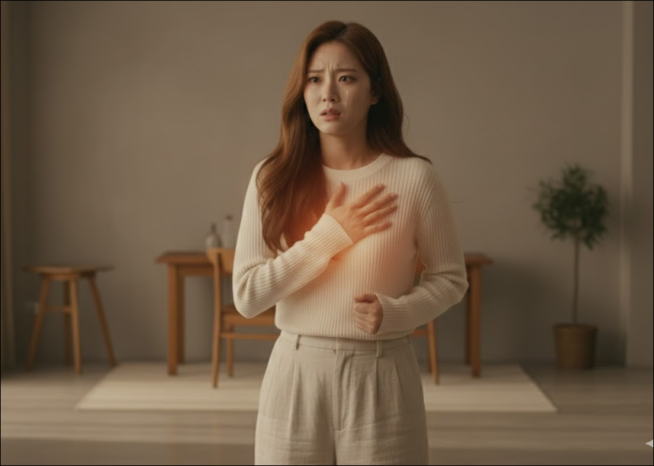 - 가슴 통증 및 압박감: 명치 부위가 조여오거나 짓누르는 느낌