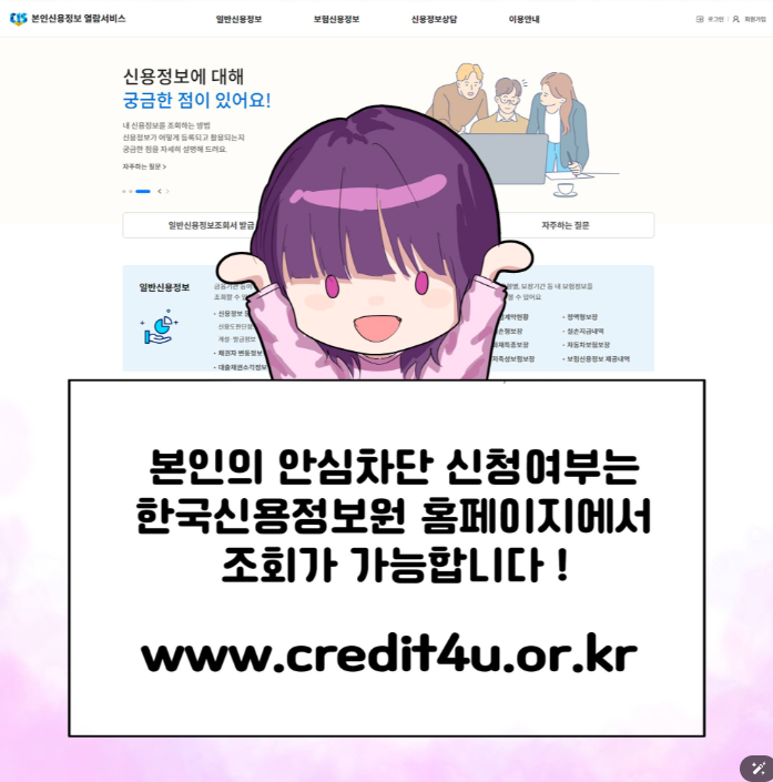 (필요시 해제 후 대출 신청 가능, 이후 재신청 가능). - 신청여부 조회: 한국신용정보원 홈페이지에서 확인 가능.