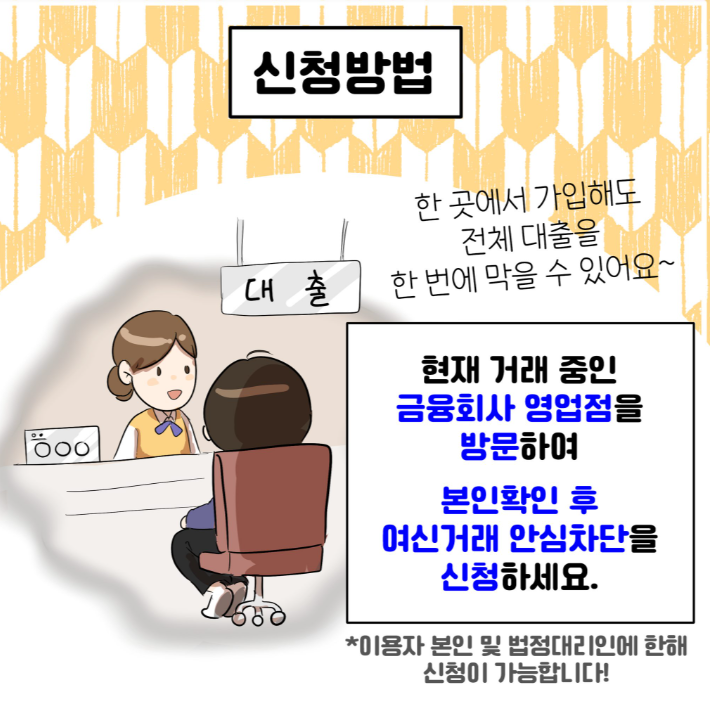 - 신청 후 대출 등 여신거래가 필요하면 반드시 영업점 방문해 해제해야 함.
