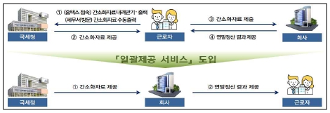 | 4단계 | 국세청 | 자료를 홈택스에 구축해 회사가 내려받을 수 있게 제공 |