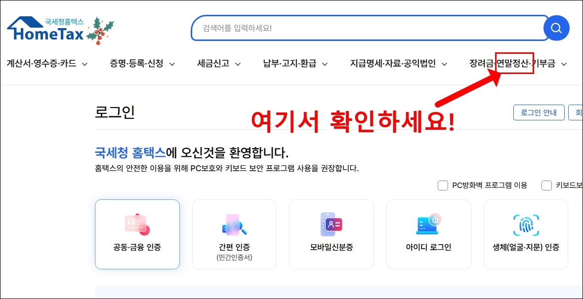 - 연말정산(간소화) 메뉴로 이동
