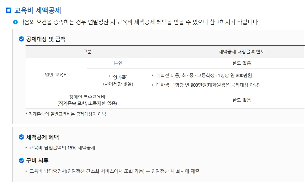 교육비 공제는 비교적 큰 금액이 들어가는 항목인 만큼,