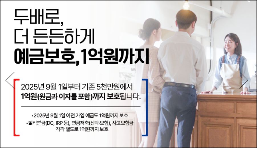 앞으로는 ‘5천만원까지만 안전하다’는 불안감에서 벗어나, 최대 1억원까지 보장받는 안전한 금융 환경 속에서 보다 전략적인 자산 관리가 가능해질 것입니다.