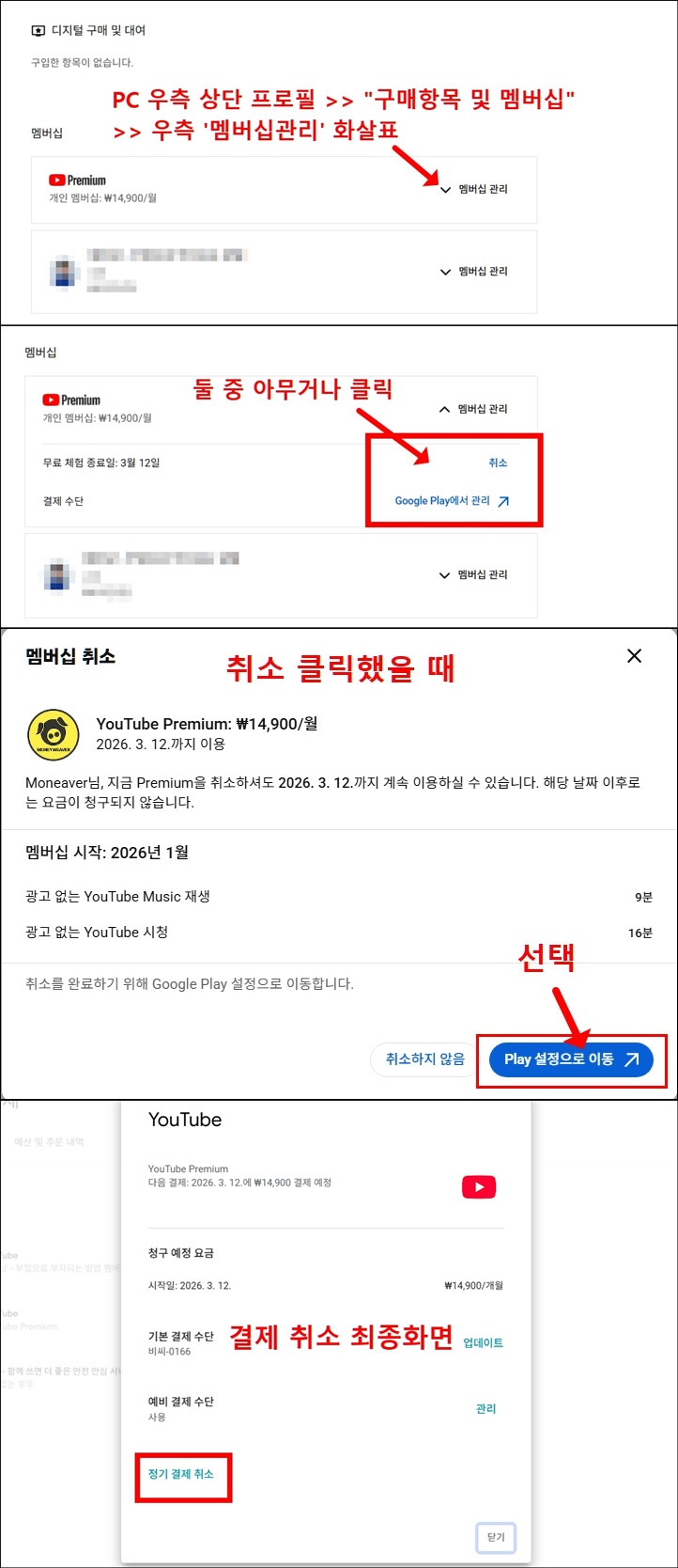 유튜브 프리미엄 가격 인상과 OTT 구독료 부담으로 인해 해지를 고민하고 계신가요? 2026년 최신 버전으로 업데이트된 유튜브 프리미엄 해지 방법을 PC, 갤럭시(안드로이드), 아이폰(iOS) 기기별로 완벽하게 정리해 드립니다.