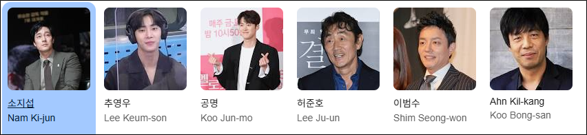 - 주연: 소지섭(남기준), 허준호, 공명, 추영우, 안길강 外