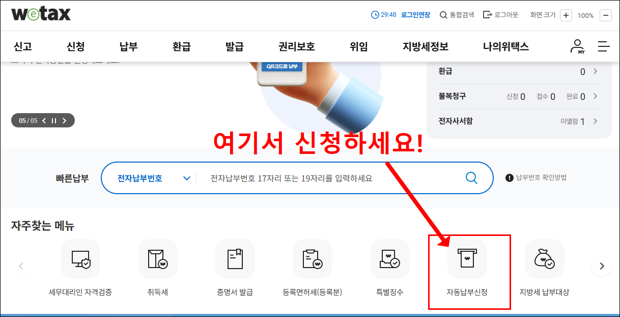Q7. 위택스에서 어디로 들어가서 신청하나요?