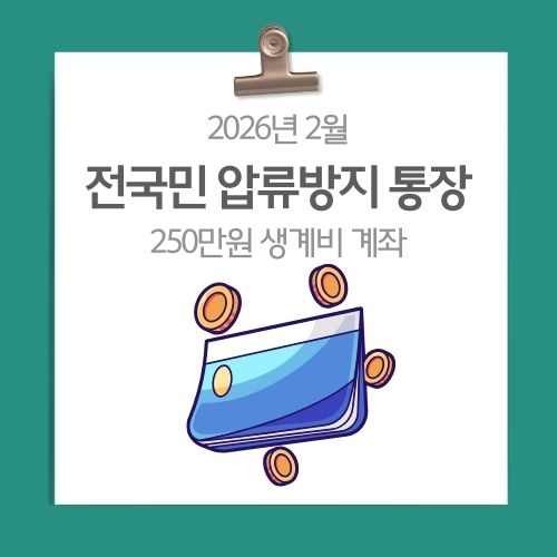 - 2026년 2월부터 전 국민 대상: 1인 1개 ‘생계비계좌’를 개설해 월 250만 원까지 압류 걱정 없이 생계비로 쓰게 하는 제도(입금 누적 한도 포함)인 전국민 압류방지 통장을 시행할 예정입니다.