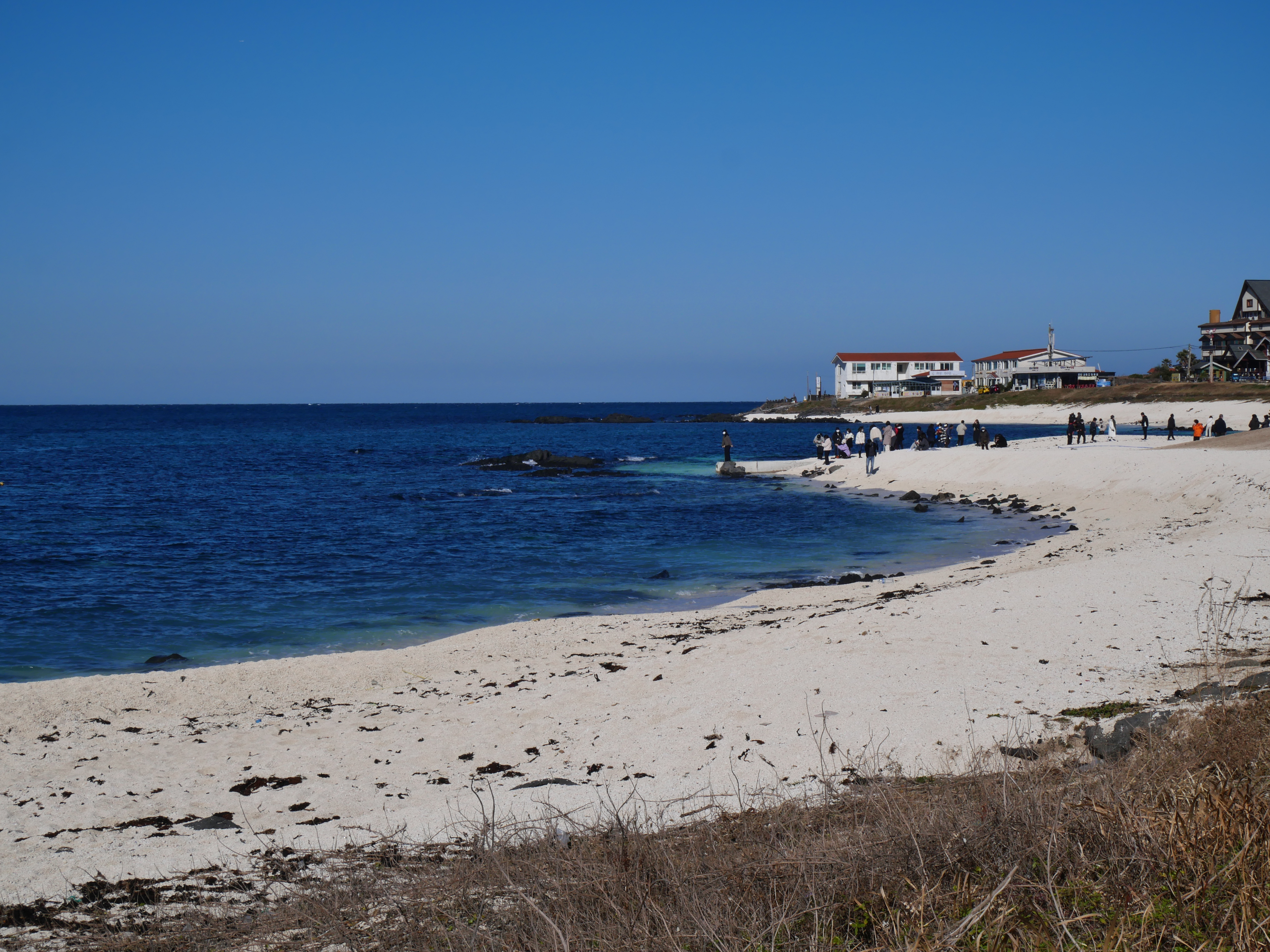첫 목적지는 바로 함덕해수욕장! 제주에서도 손꼽히는 에메랄드빛 바다색을 자랑하는 곳이죠. 잔잔한 바다와 고운 모래사장을 걷고 있으면 '아, 내가 제주에 왔구나' 실감이 난답니다. 바로 옆에 붙어있는 카페 '델문도'는 통유리창으로 함덕 바다를 한눈에 담을 수 있어 커피 한 잔의 여유를 즐기기에 완벽한 장소예요.
