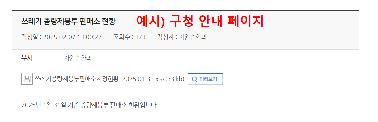 실제 지자체 공식 페이지를 보면, 종량제봉투 관련 정보는 보통 아래 3가지 형태로 제공됩니다.
