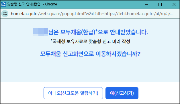 종합소득세 원클릭 환급 서비스 신청 및 환급금 조회 방법