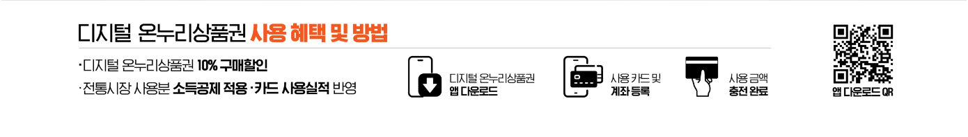 고물가 시대, 10%의 할인은 더 이상 선택이 아닌 필수입니다. 지금 바로 '디지털온누리상품권' 앱을 다운로드하고, 알뜰한 소비와 풍성한 연말정산 혜택을 모두 잡아보세요! 전통시장에 활기를 불어넣는 착한 소비는 덤입니다.