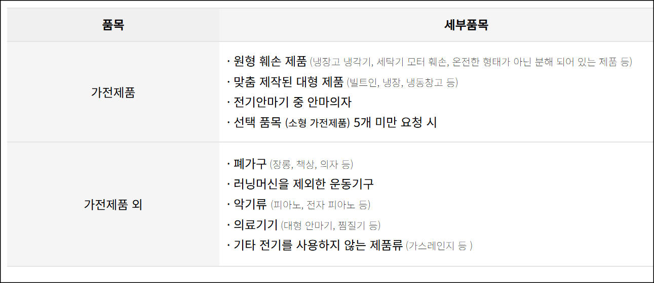 ③ 폐가전 방문수거 대상품목 수거 시 비대상 소형가전제품도 추가 수 거 가능합니다.