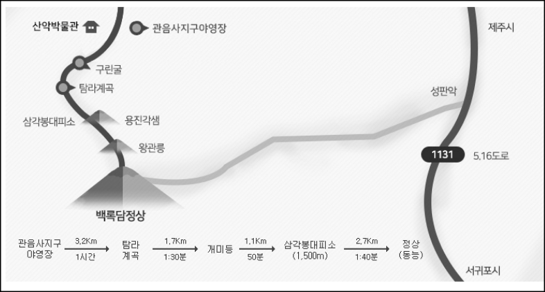 ▣ 관음사탐방로 (삼각봉대피소 편도 3시간 20분, 정상 편도 5시간,왕복 10시간) - 8.7Km