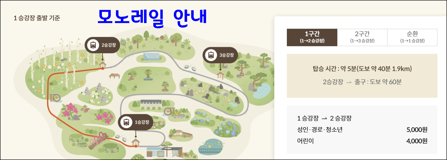 - 모노레일은 온라인 예약 시 대기 없이 바로 탑승 가능