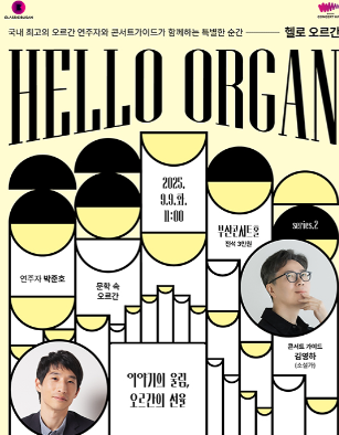 - 9월 9일 (화) & 10월 10일 (금) & 11월 27일 (목) HELLO 오르간 (콘서트홀): 부산콘서트홀의 자랑, 파이프오르간의 웅장한 매력을 느낄 수 있는 시리즈 공연입니다.