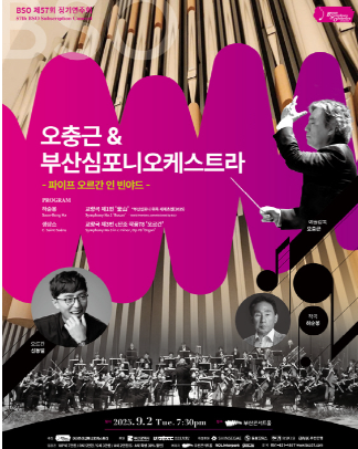 • 9월 9일 (화) & 10월 10일 (금) & 11월 27일 (목) HELLO 오르간 (콘서트홀): 부산콘서트홀의 자랑, 파이프오르간의 웅장한 매력을 느낄 수 있는 시리즈 공연입니다.