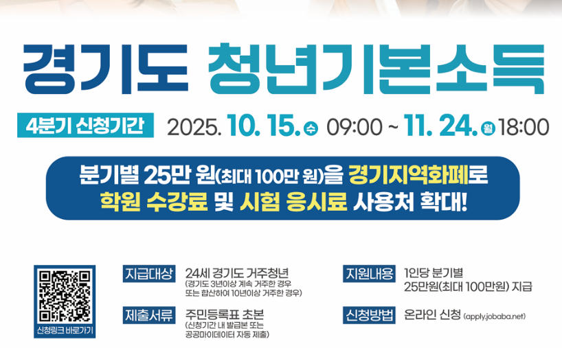 2025년 4분기 경기청년기본소득 신청이 시작되었습니다!