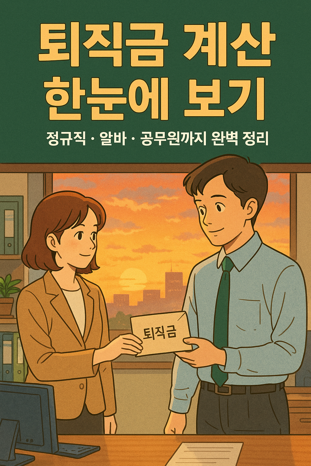 정규직, 일용직, 아르바이트, 공무원 등 근로형태별로 계산법이 달라지고, 세금(퇴직소득세) 도 함께 알아야 정확합니다.