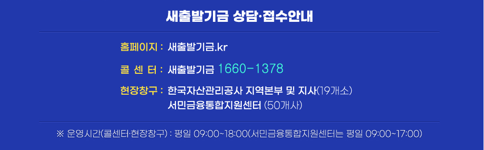 - 새출발기금 콜센터 (부실차주): 1660-1378 37