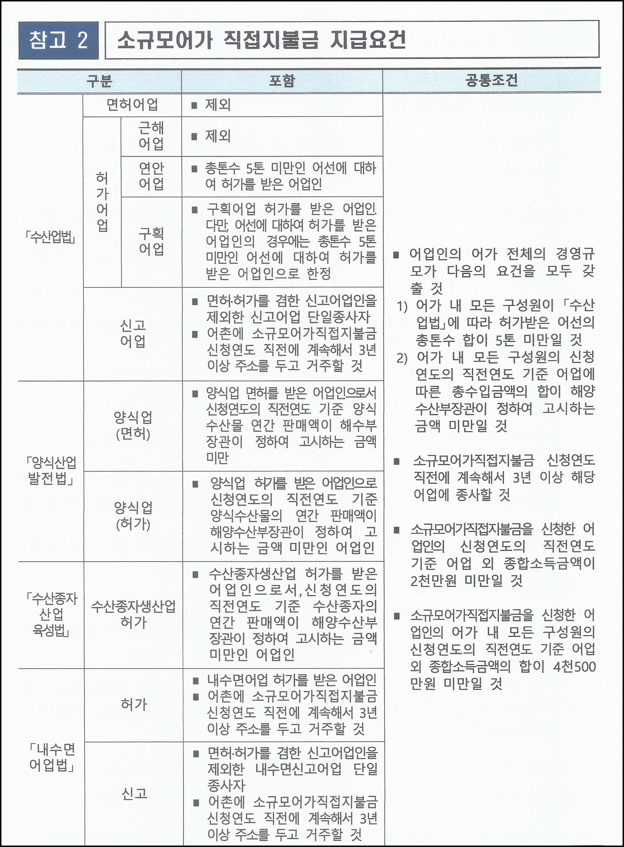 - 신청처: 어업인이 속한 어촌계 또는 수협