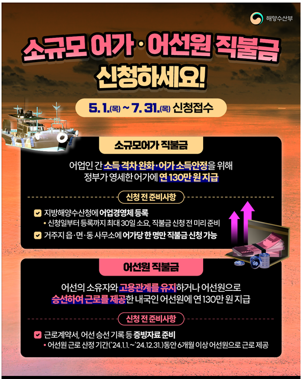 어업인의 소중한 노력에 정부가 함께합니다. 놓치지 말고 꼭 신청하시기 바랍니다!