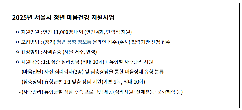 2025년 3차 [서울 청년 마음건강 지원사업] 심리상담 신청방법
