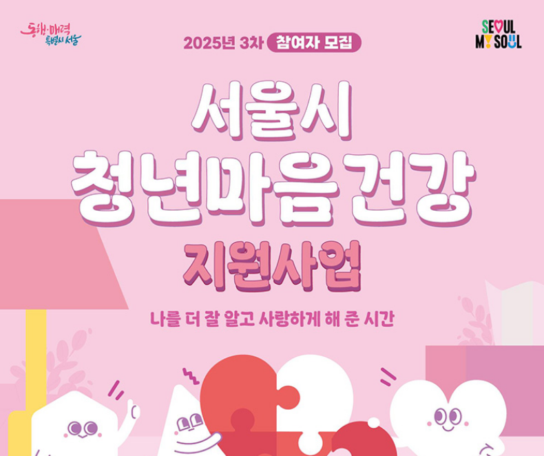 서울시는 청년들의 마음 회복과 성장을 지원하기 위해 ‘청년 마음건강 지원사업’ 3차 참여자 2,500명을 모집 중입니다. 과학적 진단과 맞춤형 상담을 통해 삶의 변화까지 도모할 수 있는 이 사업, 서울에 거주 중인 청년이라면 꼭 주목하세요!