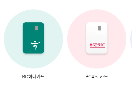 - 신한, 하나, 우리, 현대, 삼성, BC(바로·케이뱅크·기업·광주), KB국민, NH농협, 카카오페이 등
