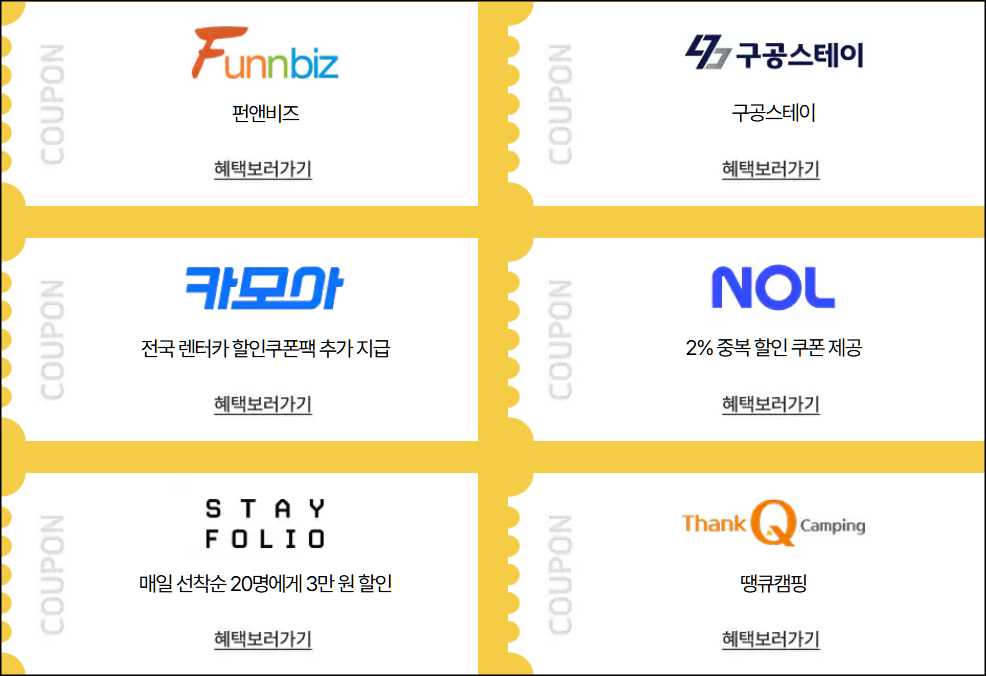 | NOL (놀유니버스) | 비수도권 및 특별재난지역 숙소 대상 최대 5만 원 할인 + 3% 추가 할인 |