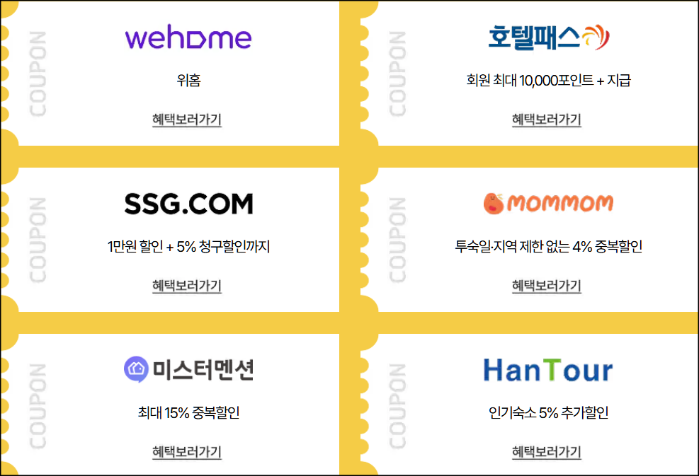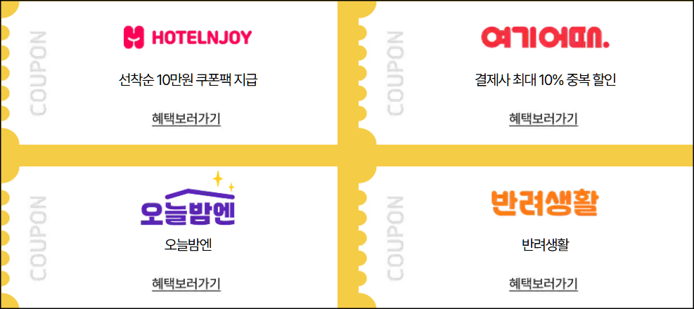 | 여기어때 | 최대 5만 원 할인 쿠폰 + 결제사 추가 할인 (토스페이, 카카오페이 등) |