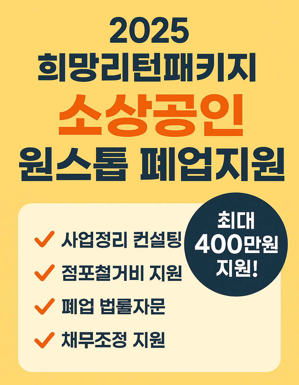 [2025년 최신] 소상공인 폐업지원 제도 총정리: 폐업 후에도 희망은 있다! (0) | 2025.07.19 |