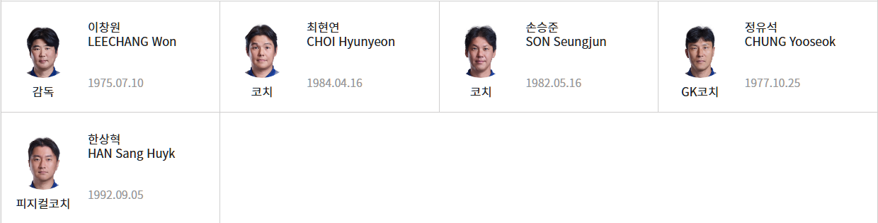 가. 🇰🇷 대한민국 U-20 대표팀 (감독: 이창원)