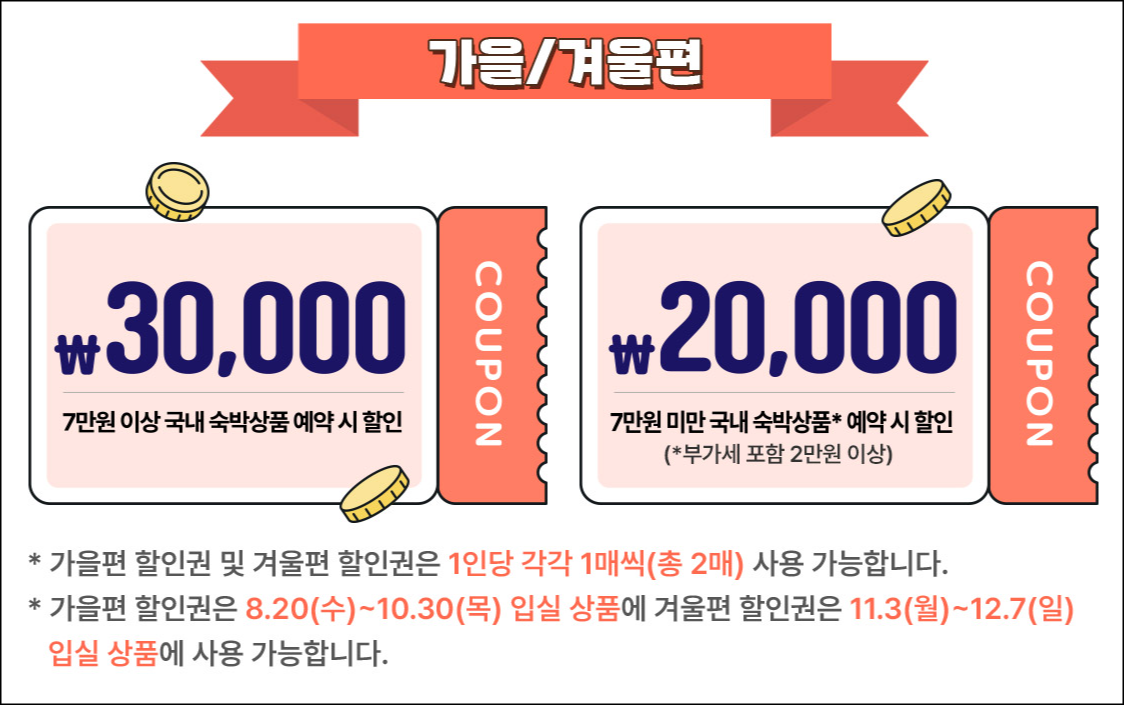 이번 가을, 숙박세일 페스타 쿠폰 받는 법을 꼭 숙지하시고 알뜰하게 여행을 준비해 보세요.