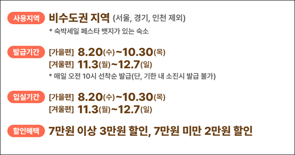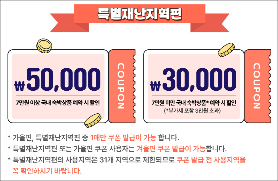 (특별재난지역편도 같은 기간 운영) - 쿠폰 발급 및 입실 기간 : 8월 20일 ~ 10월 30일