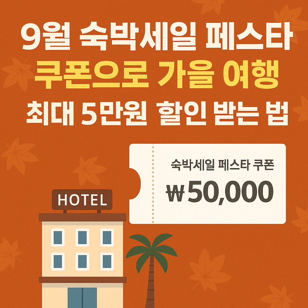이어지는 9월에도 숙박세일 페스타는 최대 5만원 할인 혜택이 주어져, 가을 여행을 준비하는 사람들에게 큰 기회가 됩니다.