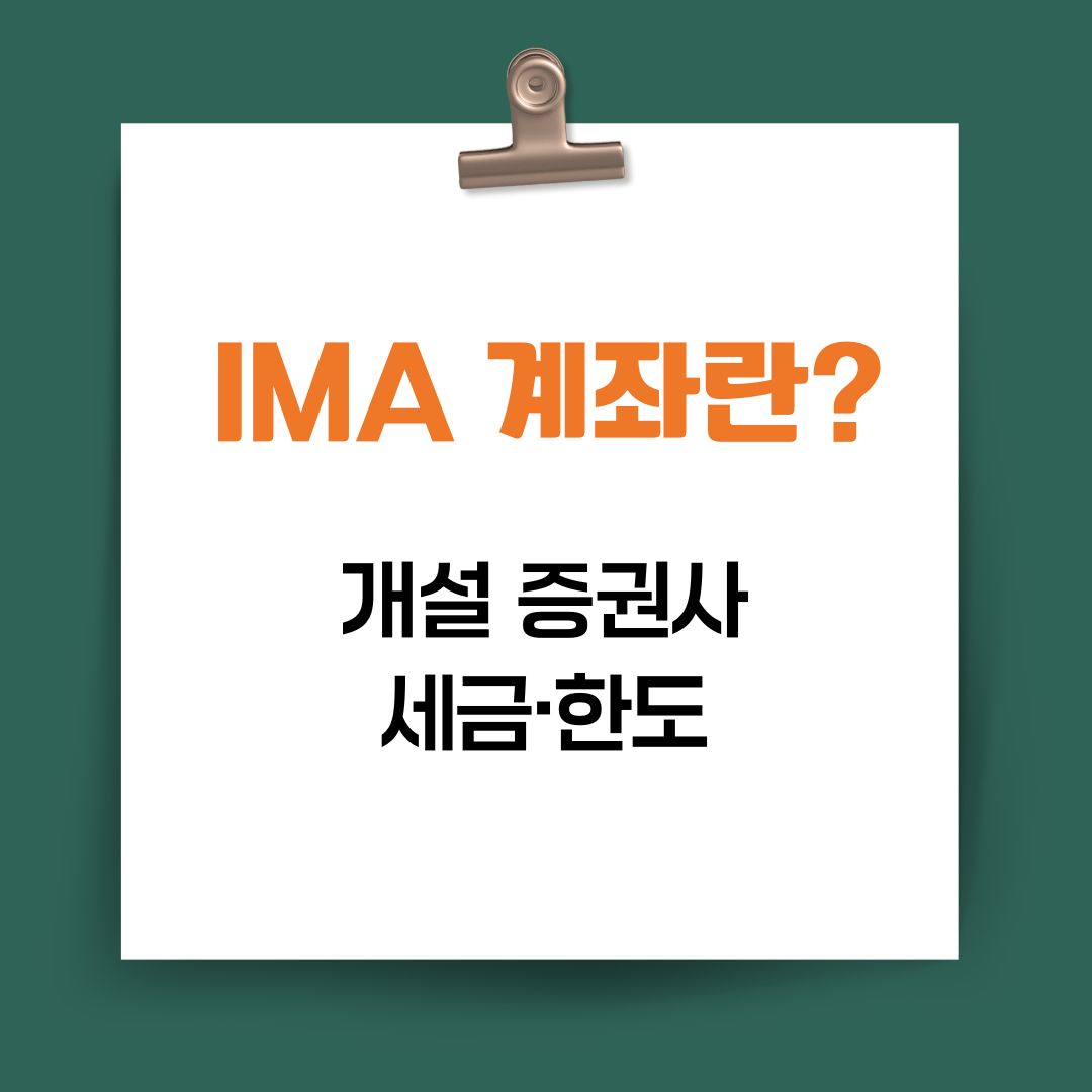 - IMA (Investment Management Account) 는 증권사가 고객 자금을 모아 기업금융 등에 투자하는 종합 투자계좌입니다.